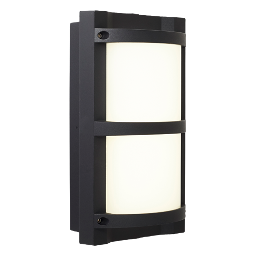 - A. IP66 rated die-cast aluminium wall light with opal polycarbonate diffuser suitable for commercial, hospitality and industrial applications