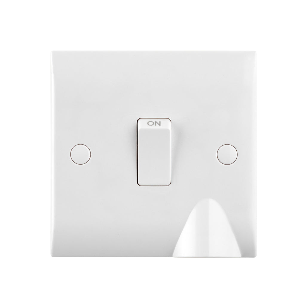 - Our 20A rated switch boasts captive screws which provide for quick, easy and a hassle free installation Supplied with fixing screws & white screw covers for sleek appearance Double pole switching for the peace of mind of a safer installation of your socket Flex outlet with cord grip on the rear This has been manufactured using high grade thermoset Urea which effectively inhibits the growth of infectious diseases, including MRSA, E-Coli, Salmonella and Klebsiella Pneumonia bacteria We recommend a minimum mounting box depth of 25mm Certified to IEC/BS EN60669