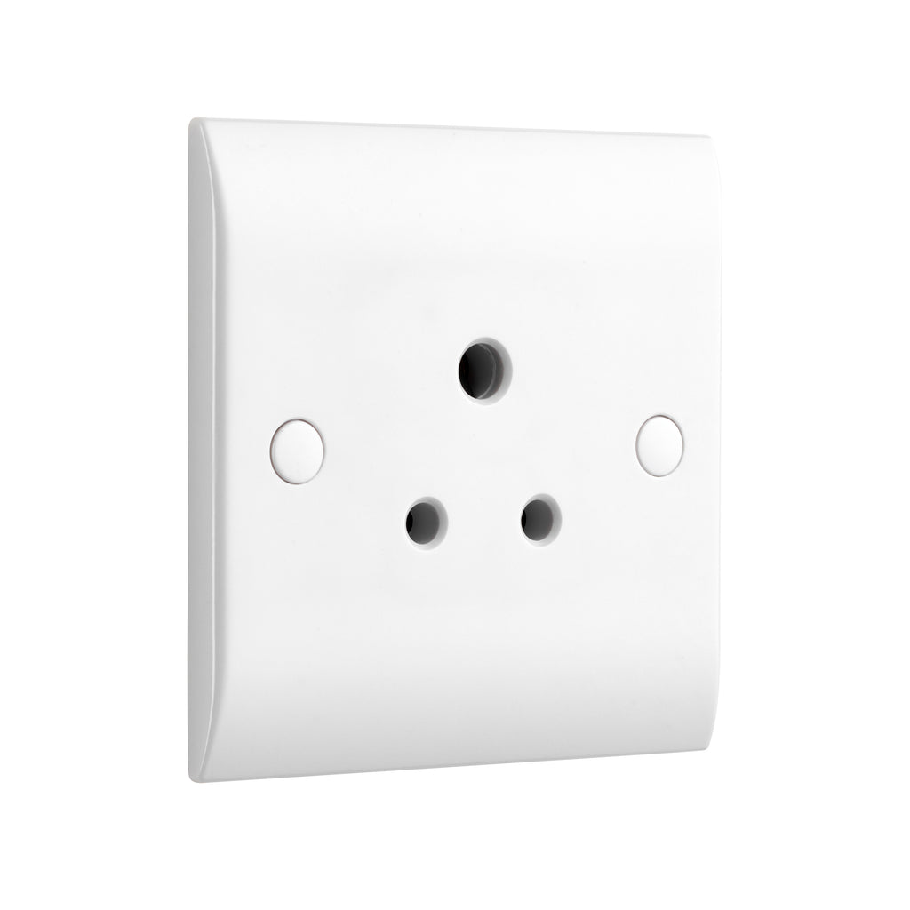 - Our 5A rated socket boasts angled in-line terminals with captive screws which provide for quick and easy access and a hassle free installation Supplied with fixing screws & white screw covers for sleek appearance This has been manufactured using high grade thermoset Urea which effectively inhibits the growth of infectious diseases, including MRSA, E-Coli, Salmonella and Klebsiella Pneumonia bacteria We recommend a minimum mounting box depth of 25mm Certified to BS 546