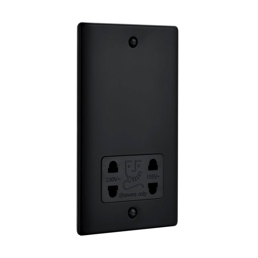 - Raised Screwed Dual Voltage Shaver Socket - Matt Black With Black Insert