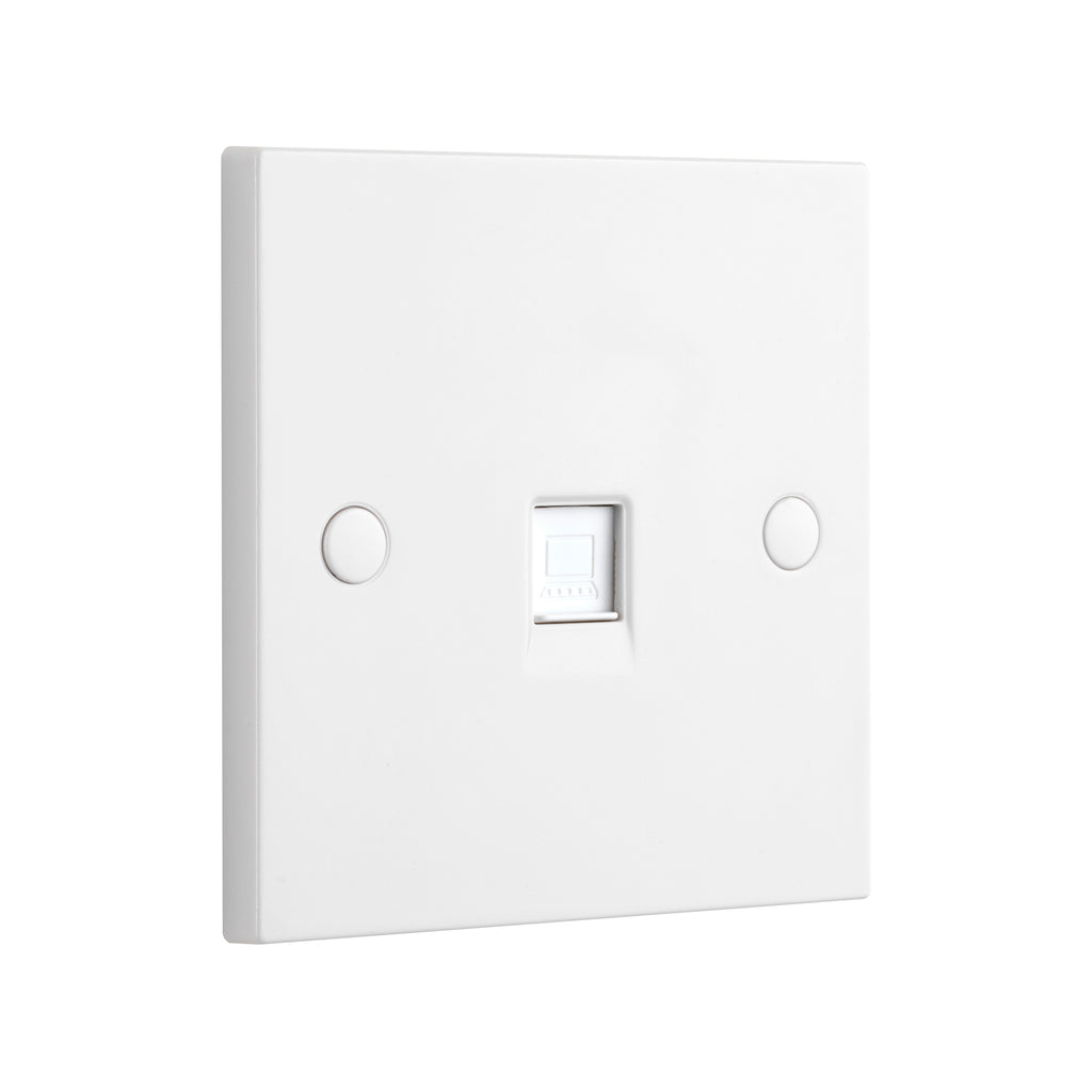 - RJ45 Ethernet socket Supplied with fixing screws & white screw covers for sleek appearance Shuttered socket This has been manufactured using high grade thermoset Urea which effectively inhibits the growth of infectious diseases, including MRSA, E-Coli, Salmonella and Klebsiella Pneumonia bacteria We recommend a minimum mounting box depth of 35mm Certified to BS 5733