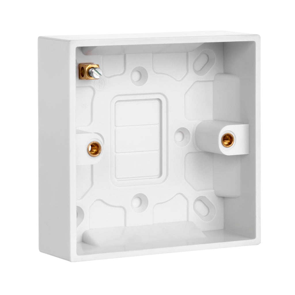 - 25mm deep Supplied with fixing screws Earth terminal fitted to each box as standard This has been manufactured using high grade thermoset Urea which effectively inhibits the growth of infectious diseases, including MRSA, E-Coli, Salmonella and Klebsiella Pneumonia bacteria