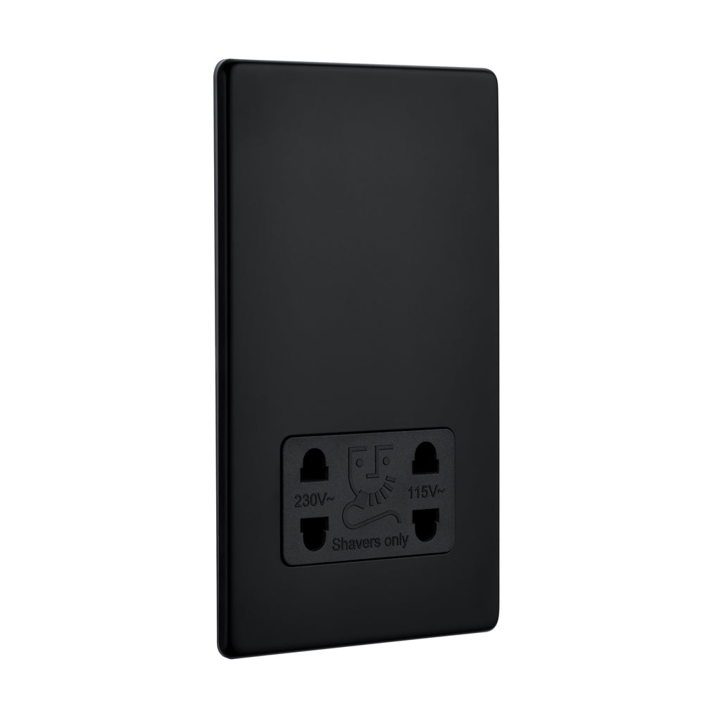 - Screwless Dual Voltage Shaver Socket - Matt Black With Black Insert
